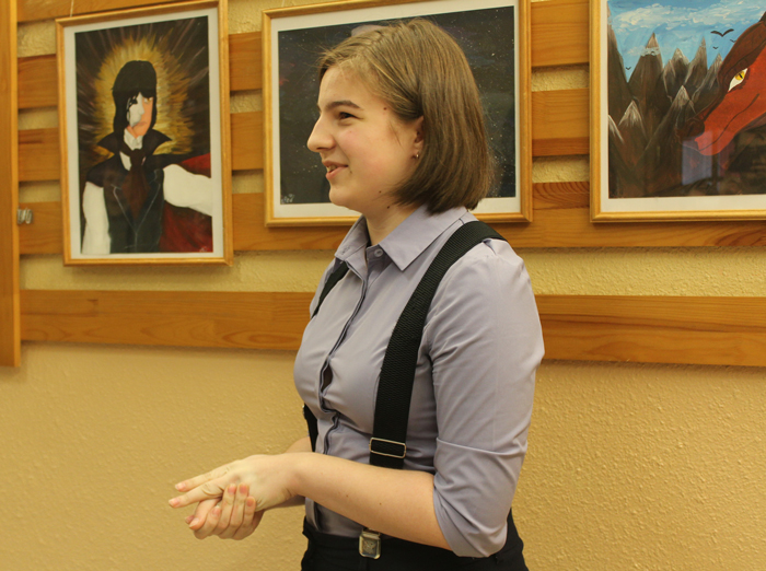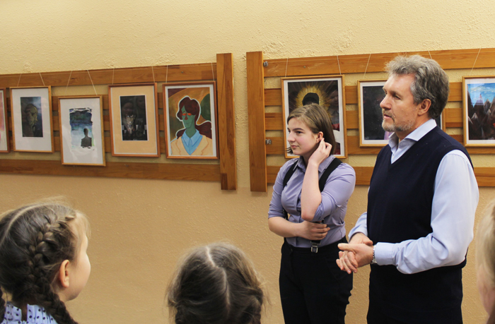 Знакомя посетителей выставки со своими работами, Анастасия заметно волновалась. Но, поборов волнение, о том, как создаёт свои работы, рассказала. И впечатление выставка оставила особенное – мир образов, которые объединяет время, очень интересен.