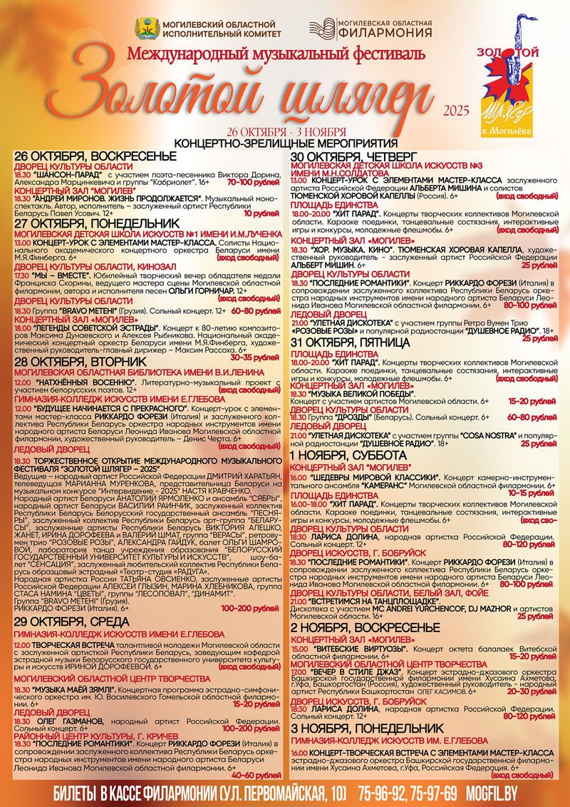 В Могилевской области с 26 октября по 3 ноября состоится Международный музыкальный фестиваль «Золотой шлягер». В этом году исполняется 30 лет со дня основания фестиваля.