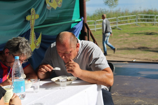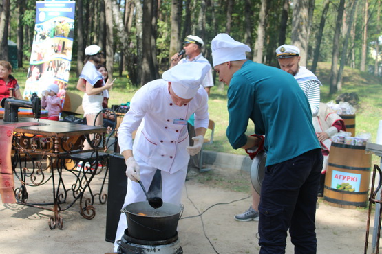 «Я сустрэў русалку, з выгляду – гадалку. Цягне зноў мяне і зноў на гэту рыбалку…» а это уже композиция в стиле шлягера на слова директора учебного заведения Игоря Китикова. Музыка Александра Высоцкого, на которую положен озорной, с «привкусом» тонкого юмора, текст, звучит в унисон настроению праздника. А он только начинается. И каждого ступающего на побережье водохранилища, где разворачивается сюжетная канва феста, встречает действо приготовления его главного атрибута. А потом объявляется дегустация. Терпкий аромат ухи, сдобренный запахами моря и прибрежного леса, пьянит и завораживает. Потом будут шашлыки и прочие вкусности, которые в изобилии представили общепитовские точки. Но ведь первое впечатление – это уха, по всем правилам поварского искусства приготовленная истинными мастерами своего дела.