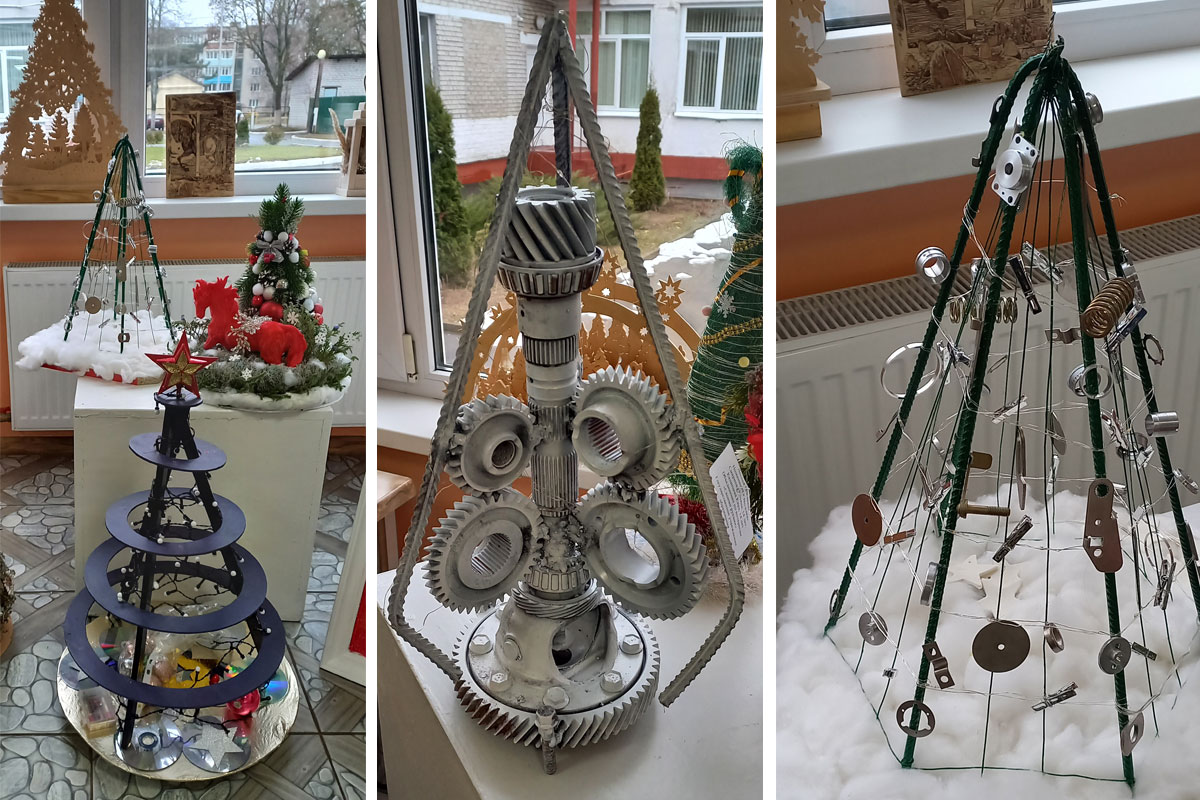 На конкурс было представлено 28 творческих работ из 12 учреждений образования. Это ёлки, рождественские композиции, праздничные украшения, символы Нового года и гирлянды.