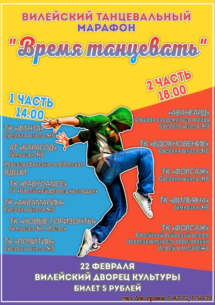 В Вилейке 22 февраля пройдет танцевальный марафон «Время танцевать». Мероприятие разбито на две части: в 14.00 и в 18.00.