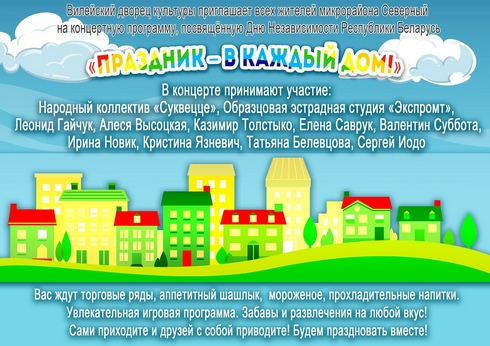 3 июля в микрорайонах города состоятся праздничные концерты, посвящённые Дню Независимости Республики Беларусь: