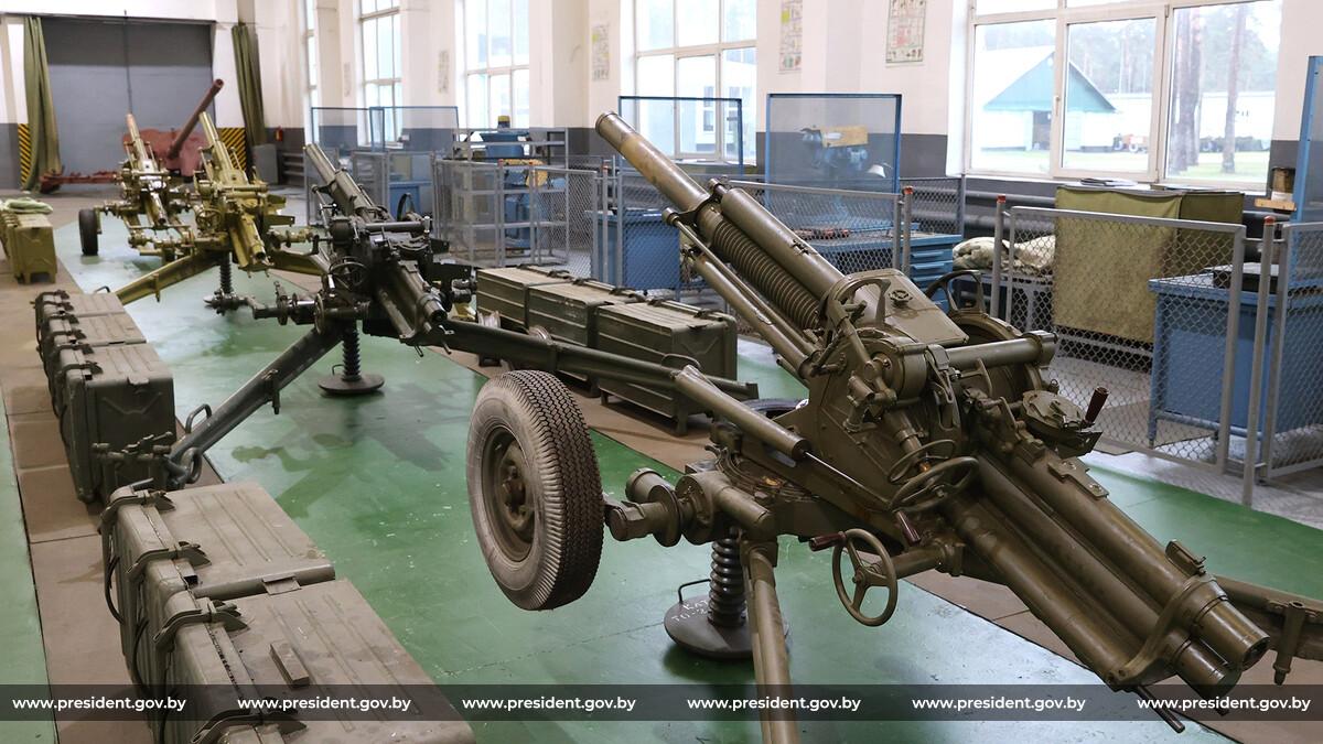 Затем Глава государства осмотрел цех по ремонту артиллерийского вооружения. Здесь, например, приводят в порядок самоходные гаубицы «Гвоздика», «Акация», пушку «Гиацинт» или автоматический миномет «Василек».