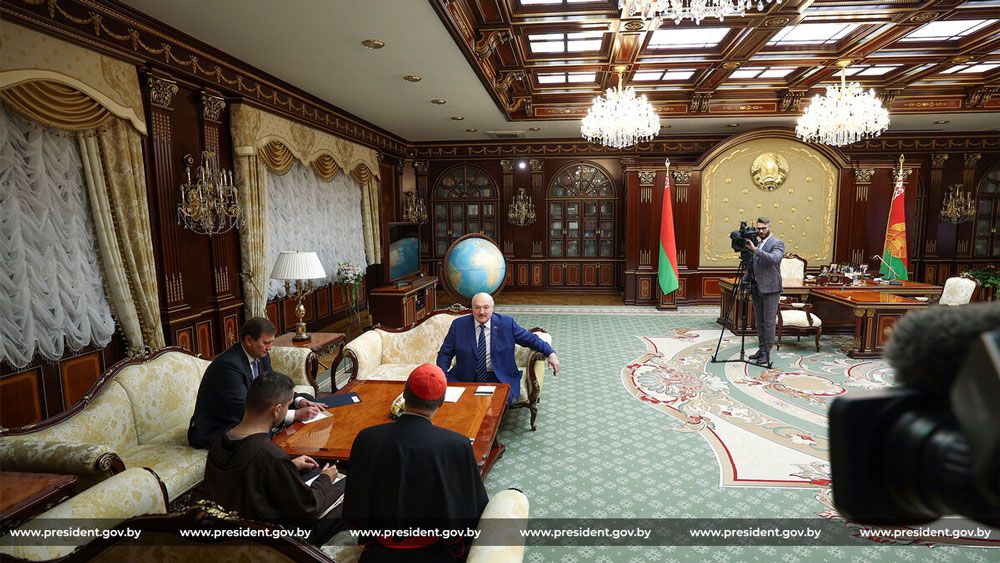 «Я ознакомлен в деталях с вашим визитом. Очень рад, что вы вспомнили Беларусь и вам понравилась Беларусь, понравились наши люди. Все. Не только католики, православные. И другие люди. И даже мусульмане очень хорошо восприняли ваш визит. Это говорит о том, что тот след ваш в Беларуси, извините за тавтологию, не бесследен, — сказал Глава государства. — Поэтому я искренне рад встретиться с вами. Я помню все наши встречи, разговоры, переговоры, обязательства, которые мы выполняем, выполнили или что-то не выполнили — мы сегодня с вами откровенно по-дружески поговорим об этом. Я очень рад встретиться и обсудить все вопросы, которые, возможно, накопились в наших отношениях».