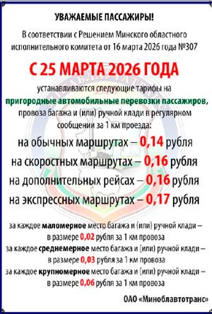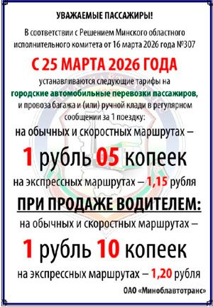 С 25 марта 2026 года в Минской области устанавливаются  новые тарифы на городские и пригородные автомобильные перевозки пассажиров в регулярном сообщении.