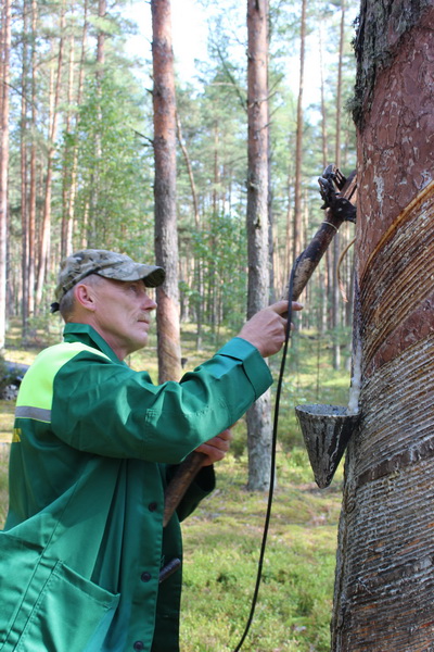 – Мы работаем строго по лесным билетам, в которых четко определены участки для подсочки. То есть в определенном лесном квартале лесники отмечают нам деревья, с которых можно собирать смолу. Раньше такие билеты выдавали нам на пять лет, сейчас – на год. В 2021 году «Белгослес» предоставит Вилейскому лесхозу новый лесоустроительный проект, согласно которому следующие десять лет и будет вестись лесохозяйственная деятельность. Мы тоже «заказали» 350 гектаров для подсочки, которые будем арендовать у лесхоза. Что нам таксаторы «Белгослеса» выделили, пока не знаем, – рассказала Антонина Николаевна.