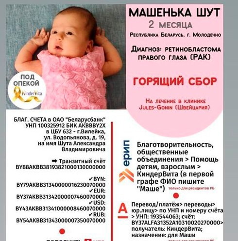 2-месячной Машеньке Шут из Молодечно требуется наша помощь