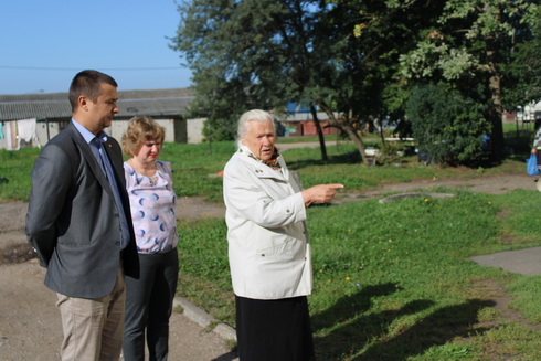 За помощью в решении имеющихся проблем к представителю районной власти обратились три местные жительницы. Староста агрогородка Евгения Цуранова обычно выступает посредником – передаёт власти вопросы, предложения и пожелания, поступающие от односельчан. Однако на этот раз она обратилась с личной просьбой: двор её многоквартирного дома по улице Молодёжной после каждого маломальского дождя превращается в “Венецию”. Но, кроме того, что от самого крыльца начинается бескрайняя лужа, ходить по ней небезопасно и в резиновых сапогах – асфальтное покрытие площадок около подъездов в сплошных ямах и выбоинах. Позже выехав на место Александр Катович заверил старосту, что для полной оценки масштабов проблемы во время выпадения осадков по адресу будут направлены представители ЖКХ. Далее будет принято соответствующее решение. Ещё один вопрос, касающийся сферы жилищно-коммунального хозяйства, поступил от Натальи Тимофеевой. Женщина представляла интересы своей пожилой матери, проживающей в 16-квартирном доме по улице Космонавтов.