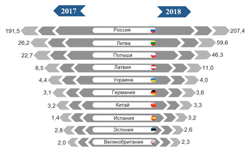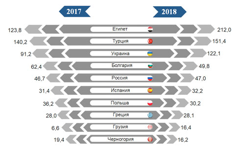 Страны-лидеры по числу туристов и экскурсантов, организованно посетивших Республику Беларусь
