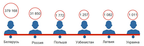 Страны-лидеры по числу организованных выездов граждан Республики Беларусь (человек)