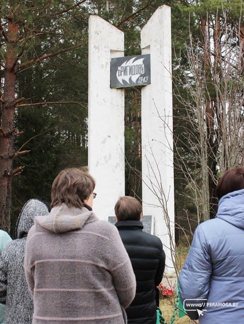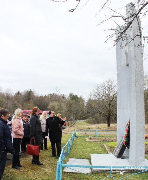 Экскурсия продолжилась посещением мемориального комплекса «Место сожжённой деревни Любча», участники мероприятия возложили цветы у обелиска в этом памятном месте и к могилам мирных жителей деревень Старинки и Бригидово.