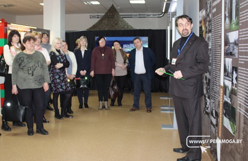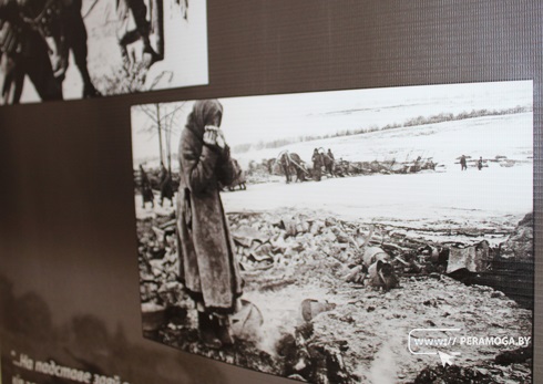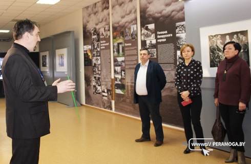 В четверг, 21 апреля, здесь побывали представители идеологического актива района. В экспозиции – факты массового уничтожения народа нацистами, названия сожжённых деревень Вилейщины, пять из которых не были восстановлены в послевоенное время, и буквами на сердце – списки их жителей, погибших в пламени. Мученическую смерть приняли женщины, старики, дети…
