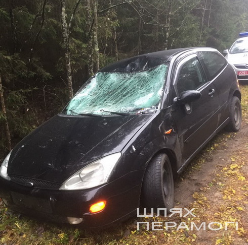 – Житель Вилейки на автомобиле «Форд Фокус» двигался в сторону д.Долгиново. На 114 километре неожиданно на дорогу выскочил лось. Водитель не успел среагировать, произошло столкновение. От удара дикое животное подкинуло прямо на лобовое стекло автомобиля.