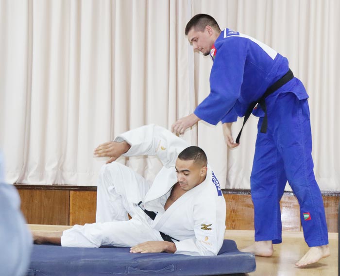 Мастер спорта международного класса Жуков Игорь и мастер спорта Сочилович Антон продемонстрировали зрителям свое мастерство и красоту «гибкого пути» — дзюдо.