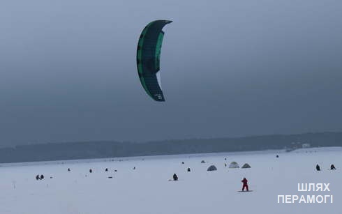 Теперь на Вилейском водохранилище отдыхают не только рыболовы-любители, но и любители экстремального вида спорта – катание за кайтом по ледяной поверхности.