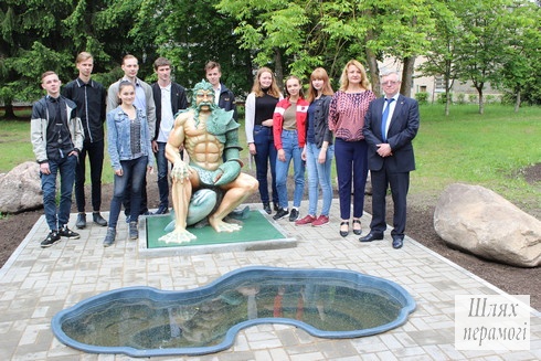 На прошлой неделе в сквере Вилейского колледжа поселился новый обитатель – рыбий царь. Необычная скульптура стала собирательным образом властного повелителя водных просторов Беларуси с элементами присущими их водным обитателям: рыбья чешуя, клешня рака, гребень и плавники тритона. Идея создания скульптуры принадлежит директору колледжа Игорю Китикову. Воплотил её в жизнь скульптор Валерий Опарик.