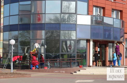Людна і ажыўлена было ў гэты дзень на тэрыторыі былога скурвендыспансера, будынак якога пасля рамонту зойме вельмі патрэбная людзям установа – тэрытарыяльны цэнтр сацыяльнага абслугоўвання насельніцтва. Жанчыны з блакітнымі хусцінкамі на шыях (па гэтай прыкмеце можна было пазнаць членаў раённага савета жанчын) дружна зграбалі мінулагодняе лісце, збіралі і выносілі смецце, парадкавалі клумбы.