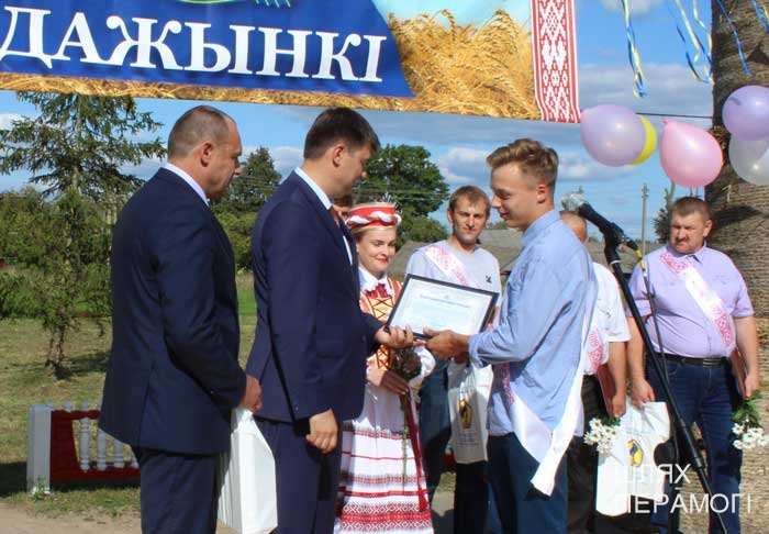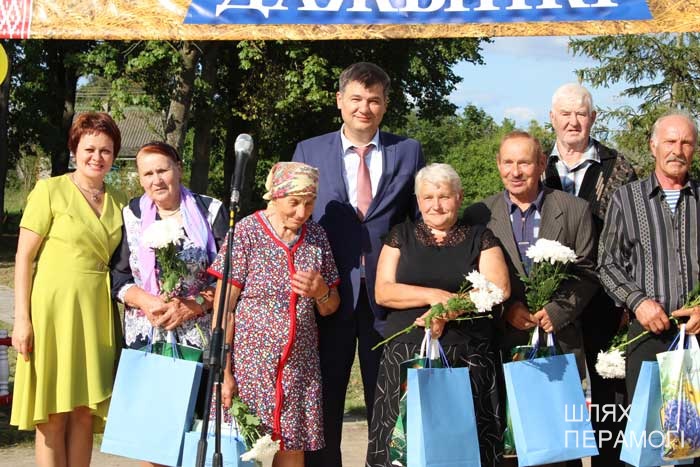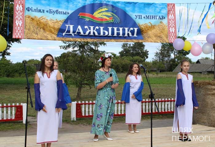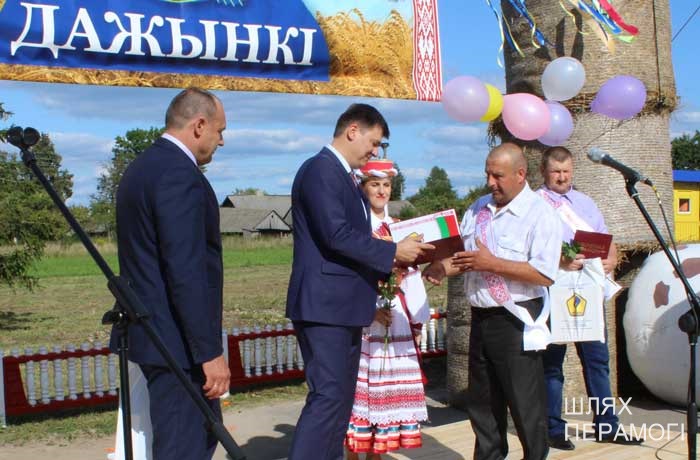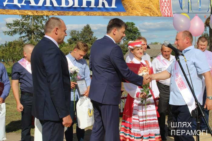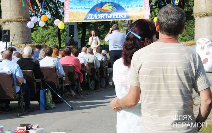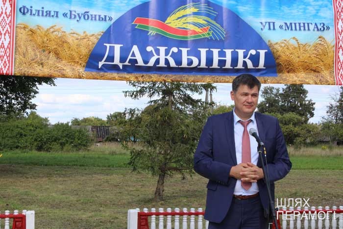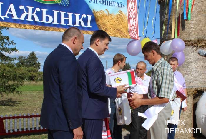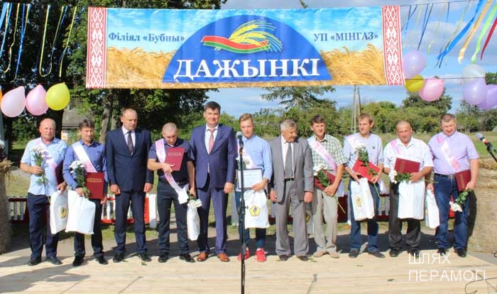 Импровизированная сцена у местного Дома культуры была сооружена заранее, поэтому к назначенному времени зрители собирались там. Ансамбль песни «Вянок» и танцевальный коллектив «PRO-движение» открыли праздник хлеборобов – людей, чьи руки пахнут хлебом, и которые на протяжении уборочной-2019 работали напряжённо и на результат. В этом году он порадовал – 3887 тонн намолотили в филиале. Поэтому и звучали в этот день адресованные передовикам слова поздравлений и благодарности от почётных гостей – генерального директора УП «Мингаз» Вадима Шолоника,заместителя генерального директора ГПО “Белтопгаз” Владимира Адашкевича, председателя первичной профсоюзной организации унитарного предприятия Марины Доморацкой, руководителя филиала «Бубны» Андрея Бушмовича и первого заместителя председателя Вилейского райисполкома Анатолия Завацкого. Цветы, грамоты и благодарности, подарки лучшим – без этого никогда не обходится подведение итогов важной сельскохозяйственной кампании.