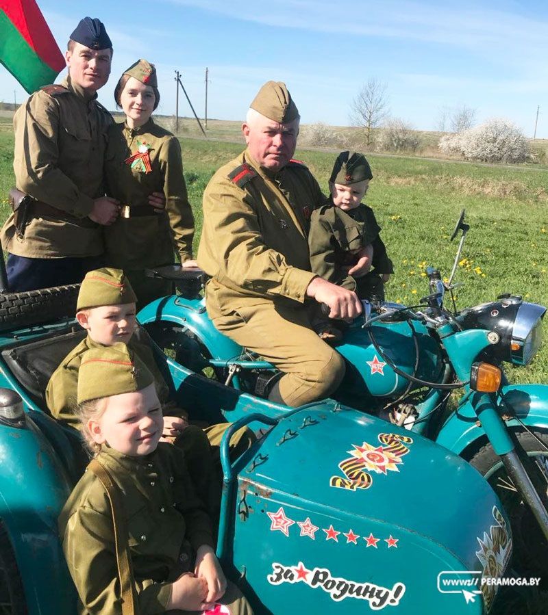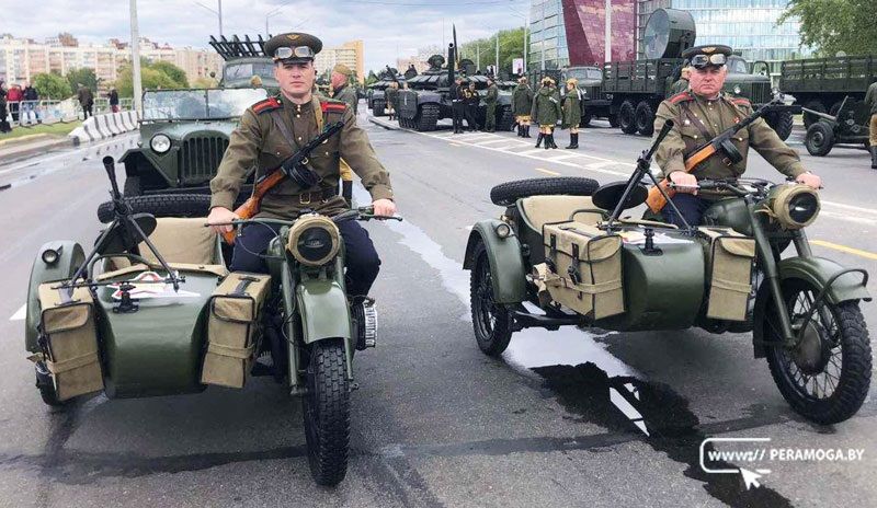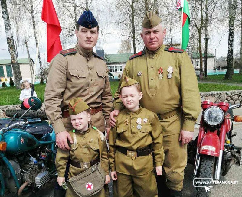 На этом редком экземпляре в 2025-м году Петр Кабанович участвовал в главном параде страны 9 мая. Рядом с ним на точно таком же мотоцикле ехал его взрослый сын.
