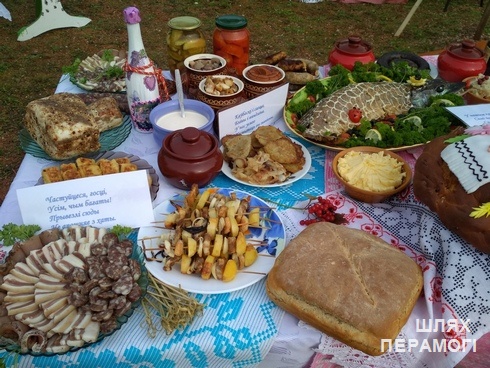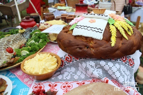 – Семья Ирины и Юрия Ардяко подготовилась к конкурсу основательно – несмотря на то, что они воспитывают четверых замечательных детей и в период уборки урожая в деревне достаточно времени уходит на сельскохозяйственные работы. Ребята подготовили колоритную визитку в стихах, старшая доченька Алина спела песню, сельский клуб помог подготовить фотовыставку семьи в виде символичного семейного дерева. Семья Ирины и Юрия уже имеет внушительную коллекцию дипломов, грамот, благодарностей – все свои награды они привезли с собой. Символом подворья стал аист с малышом в клюве – будем надеяться, что в будущем он принесет седьмое «Я» в эту невероятную семью, ведь шесть «Я» у них уже есть! Следует отметить, что семья Ардяко проживает на территории Ижского сельского Совета, а он у нас славится «журавiнамi». Именно поэтому эти ягоды стали центральным элементом экспозиции: гости могли попробовать разные лакомства – клюкву в сахаре, морс, квашеную капусту с клюквой. От нашей семьи губернатор Минской области Анатолий Исаченко получил в подарок плетеную корзину с «журавiнамi». Множество угощений привлекало гостей праздника к подворью семьи из Вилейского района: гости дегустировали напиток «Раўгеня», домашние хлеб и сыр, ижанскую криничную воду, драники, деревенский шашлык, мясные изыски, бутерброды со щедрым слоем домашнего масла, блинчики с домашним творогом, фаршированную рыбу… Одним из главных хобби Ирины Ардяко является выпечка – и хозяйка для выставки подготовила богатый стол: множество сдобных булочек, кремовый торт, пирожные, печенье с шоколадом, вафли, хрустящая выпечка и травяной напиток из сушеной травы иван-чай, которым также славится Ижская земля.