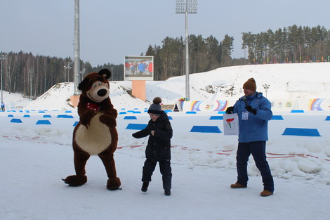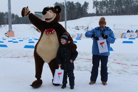 Итоговое награждение победителей индивидуальных и групповых гонок юных биатлонистов провела 10 февраля четырехкратная олимпийская чемпионка по биатлону Дарья Домрачева, которая пожелала юным спортсменам удачи во всех начинаниях.