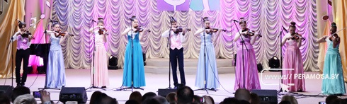 Кто не помнит «Миллион алых роз» в исполнении Аллы Пугачёвой? Инструментальная версия песни прозвучала в исполнении образцового ансамбля скрипачей «Комплимент» под руководством Татьяны Жук. Продолжили концерт Влад Рыдкин и компания юных стиляг с зажигательным твистом всех времён «Оранжевый галстук». А зажигательные танцы подарили зрителям юные ковбои – учащиеся хореографического отделения и участницы образцового ансамбля мажореток «Фиеста».