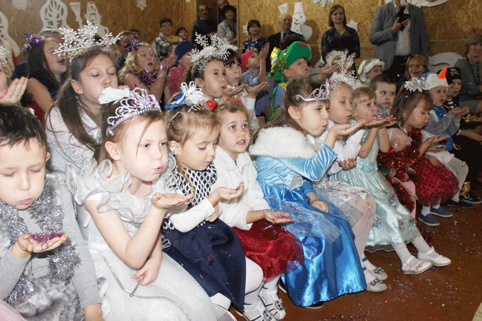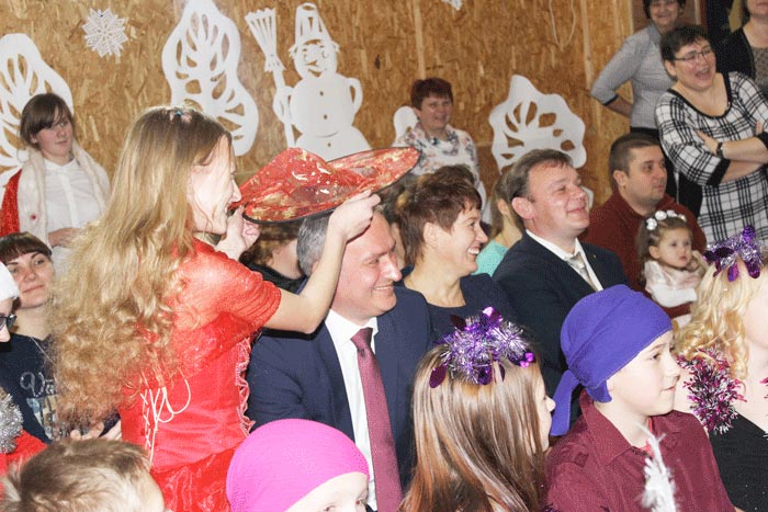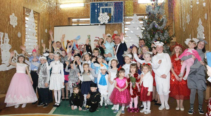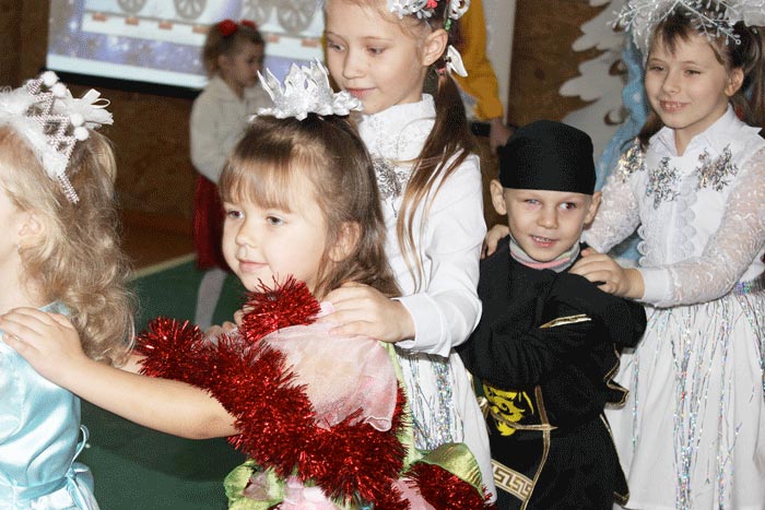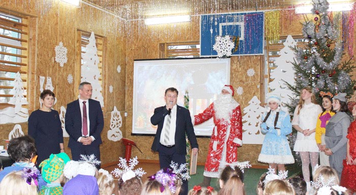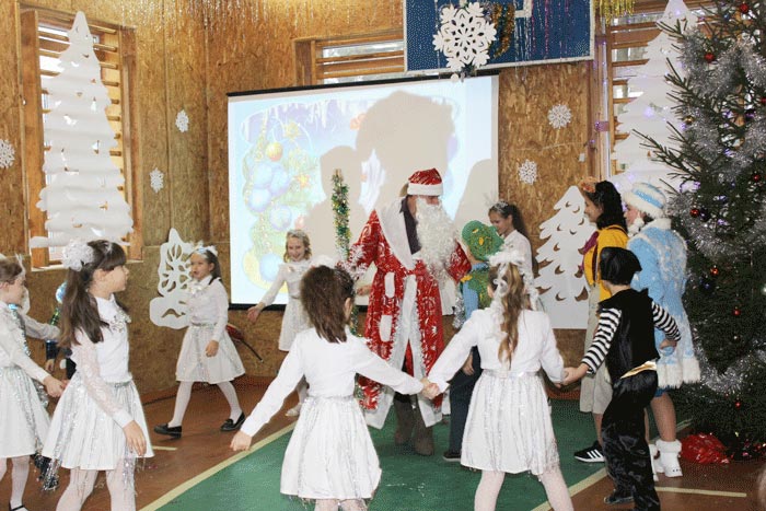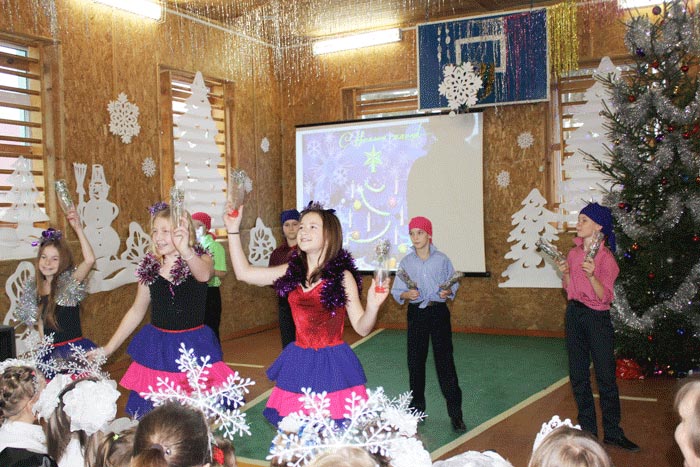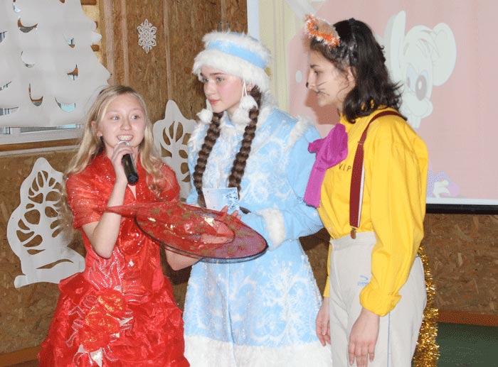 К встрече гостей ребята подошли со всей ответственностью и подготовили праздничную программу с очень интересной театрализацией. Главными героями представления стали мыши и кот Леопольд. Проказники мыши пытались испортить Новый год, а кот Леопольд со Снегурочкой спасали Деда Мороза и праздник для детишек. Завершился спектакль вручением подарков – школе передали телевизор, фотоаппарат, развивающий конструктор Лего для учащихся, а дошкольникам – сладкие подарки. Представители Минтранса при выборе подарков ориентировались на новогодние пожелания самих учащихся.