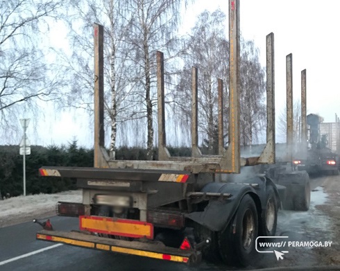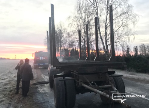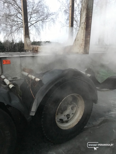 Около 7.40 на 16-м километре автодороги «Вилейка – Вязынь» в лесовозе борисовской организации в прицепе заклинило заднее правое колесо, от чего произошло возгорание.