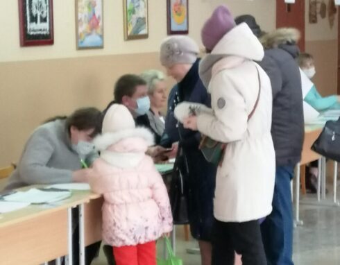 На Южном участке для голосования в Вилейской гимназии №2 традиционно голосуют семьями.