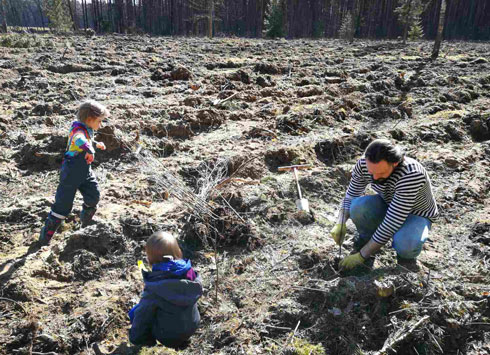Ежегодная акция в Вилейском районе завершилась в Вязынском лесничестве, куда в помощь лесоводам прибыл десант добровольцев из Минска. Более 4 тысяч саженцев сосны и березы они высадили на вырубке возле деревни Понятичи. Инициатор помощи волонтеров – многодетная мама Юлия Донскова, минчанка, которая уже десятый год вместе с друзьями и неравнодушными людьми помогает лесхозам Беларуси в посадке леса.