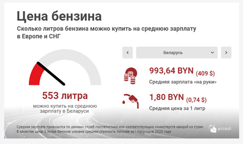 Команда Picodi.com проследила изменение стоимости бензина в мире и подсчитала, сколько литров бензина могут позволить себе белорусы в 2020 году.