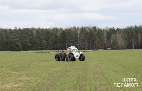 Да сотні гектараў азімых падкормлівае штодзённа на сваёй прыгажуні «Расе» – самаходным апырсквальніку – механізатар Сяргей Дубяга, якога мы сустрэлі на полі ля Урэчча. Падобная на вялікую страказу з дваццаціметровым размахам «крылаў», сучасная машына лёгка і прыгожа снавала па полі, то набліжаючыся да дарогі, то аддаляючыся да лесу, ператвараючыся ў белую крылатую кропку. Ішла падкормка карбаміда-аміячнай сумессю азімага трыцікале.