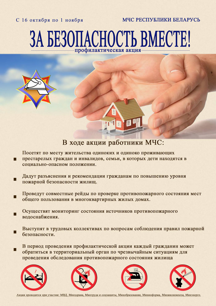 Начался пожароопасный период, поэтому с 16 октября по 1 ноября 2019 года на территории Вилейского района пройдет республиканская пожарно-профилактическая акция «За безопасность вместе!», в рамках которой основные усилия будут направлены на работу по снижению количества пожаров, происходящих по причине несоблюдения гражданами правил пожарной безопасности в жилых зданиях и сооружениях, укреплению правопорядка, предупреждению правонарушений, совершаемых гражданами, находящимися в состоянии алкогольного опьянения.