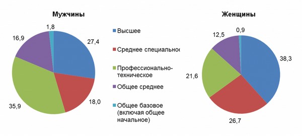 Уровень образования является одним из важнейших показателей качественного состава кадров. Среди занятого в экономике населения в 2018 году высшее образование имели 32,8%, среднее специальное – 22,3%, профессионально-техническое – 28,8%, общее среднее – 14,7%, общее базовое (включая общее начальное) – 1,4%.
