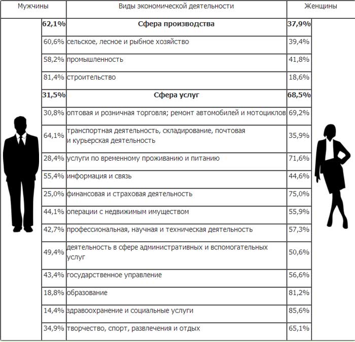 РАСПРЕДЕЛЕНИЕ ЧИСЛЕННОСТИ МУЖЧИН И ЖЕНЩИН, РАБОТАЮЩИХ В ОРГАНИЗАЦИЯХ,