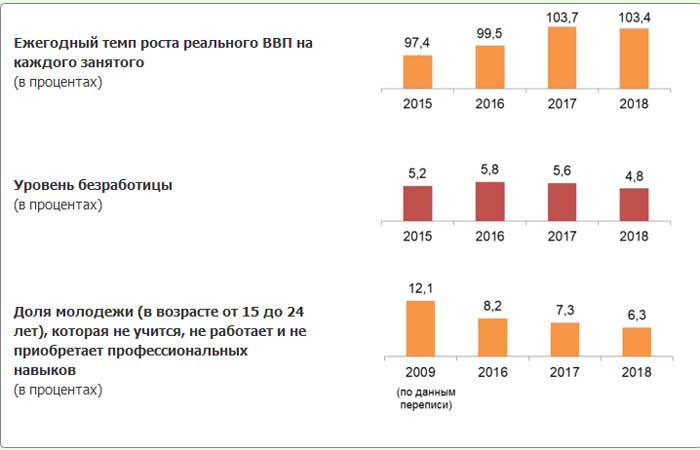 Реализации ЦУР 8 «Достойная работа и экономический рост» будет способствовать решение таких задач, как обеспечение эффективной занятости, создание высокопроизводительных рабочих мест, улучшение условий труда, рост доходов и благосостояния населения.