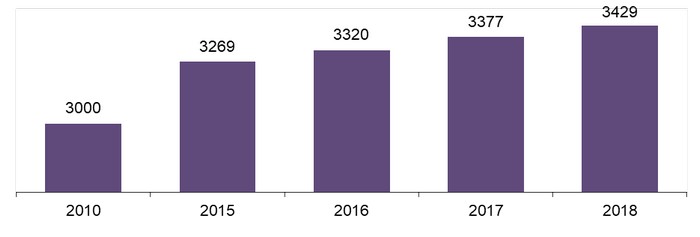 На конец 2018 года основной фонд музеев включал 3,4 млн. экземпляров (на 14,3% больше, чем в 2010 году).