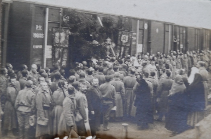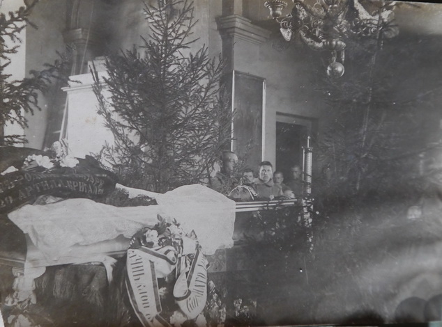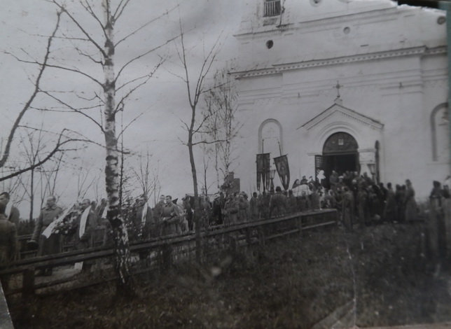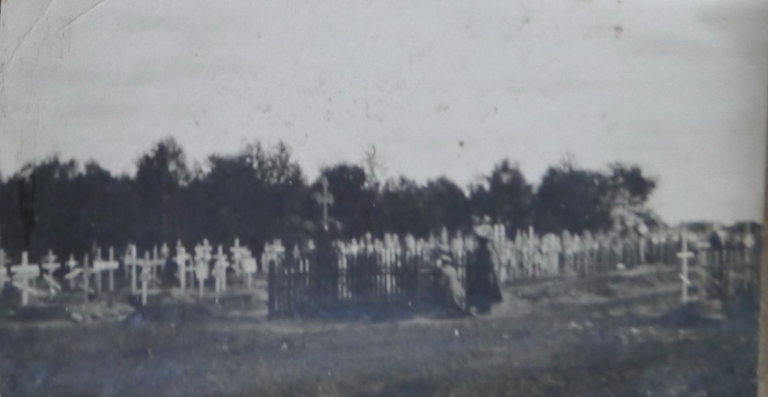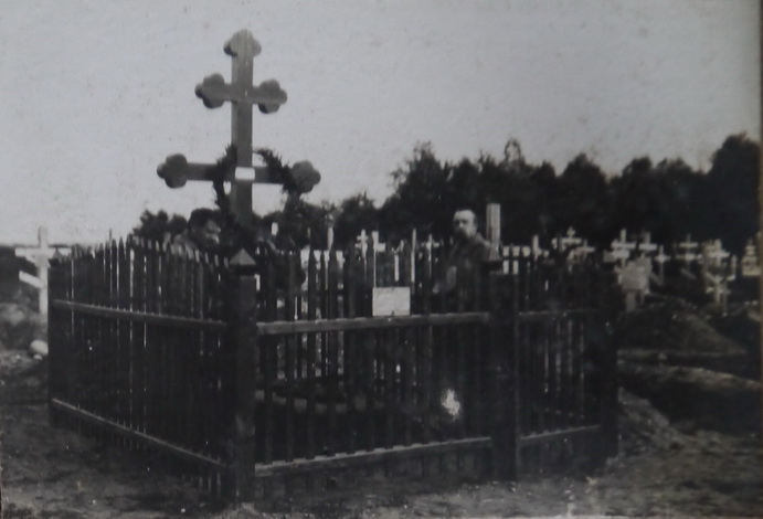 Есть и два фотоснимка, на которых предположительно снято Вилейское братское кладбище (о нем рассказывалось ранее в №22 от 23 марта 2019 года). Известно, что на этом кладбище был похоронен рядовой 22-го авиационного отряда Дмитрий Шатырёв, и его могила была богата оформлена. Может показаться странным, что у рядового солдата была так хорошо обустроена могила. Но нужно вспомнить, что среди нижних чинов авиаторов были высококвалифицированные столяры-краснодеревщики, которые ремонтировали самолёты. В свободное время они вполне могли для своего друга и боевого товарища сделать добротный крест и оградку вокруг могилы, ведь и инструментов, и материала у них хватало.