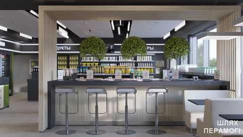 АЗС с круглосуточным режимом работы мощностью 250 заправок в сутки нефтепродуктами АИ-92, АИ-95, ДТ, в зимний период ДТ (арктика), с совмещенным торговым залом площадью 114 м2, включающим зону кафетерия на 12 посадочных мест, гостевую парковку на 10 машиномест, пост подкачки шин, пылесос.