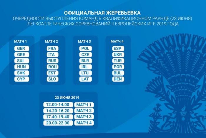 Напомним, легкоатлетические соревнования II Европейских игр 2019 года пройдут в новом формате – «Динамичная новая легкая атлетика» (Dynamic New Athletics – DNA). Формат состязаний DNA предполагает проведение матчей между смешанными командами-участницами, где все сборные будут распределены по группам, начиная с квалификационного раунда (23 июня):