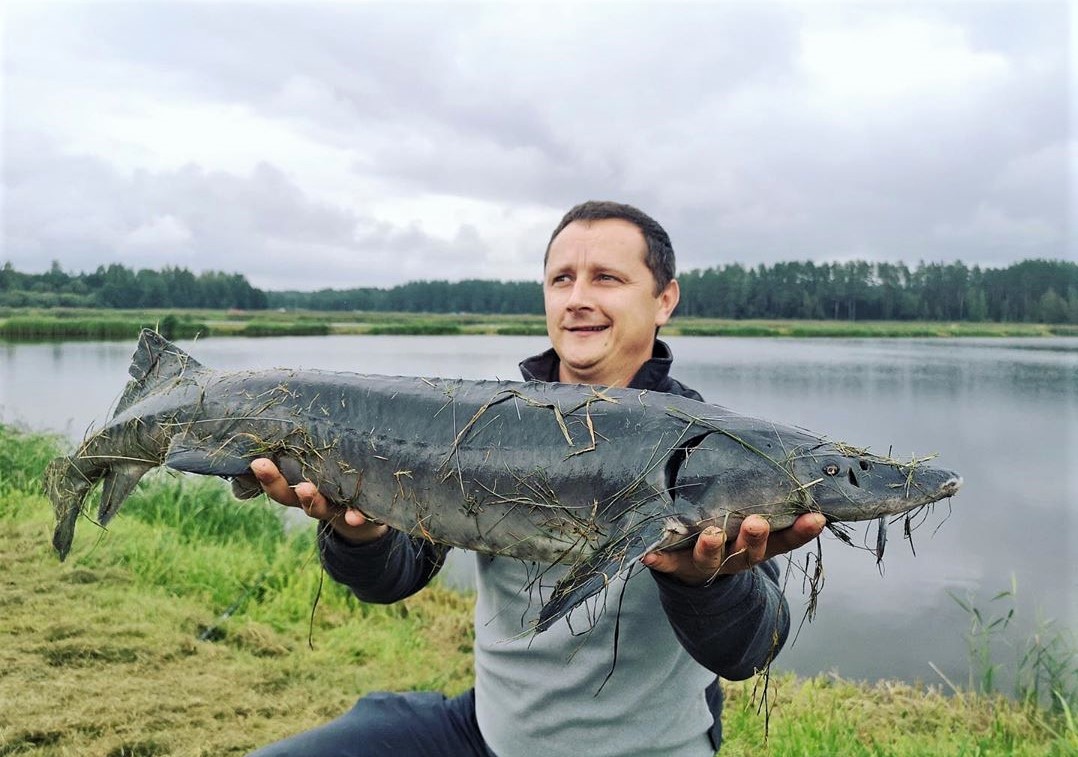 Этот ленский осетр весом 5.2 кг был пойман Сергеем Чирковским из Минска на базе отдыха «Щарка» Вилейского района.