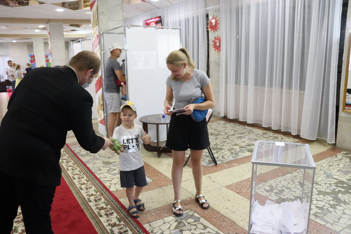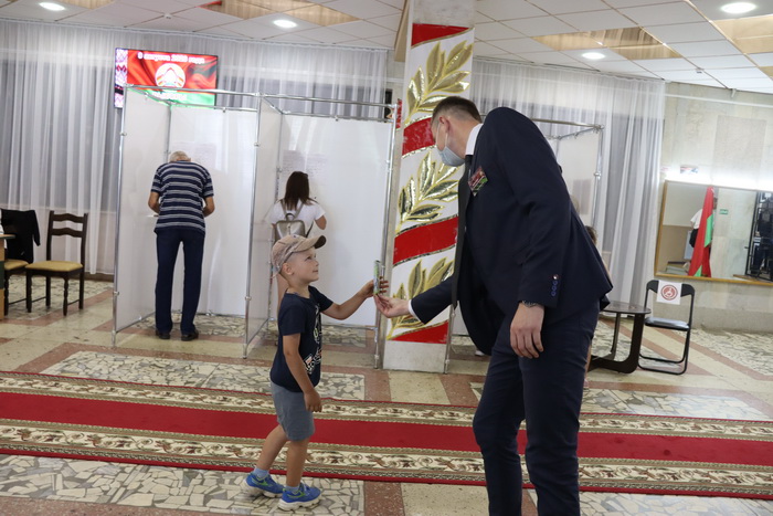 Каждому сотому, двухсотому, трёхсотому избирателю и так далее на Центральном участке вручают сувениры, абонементы в бассейн, пригласительные на мероприятия. А вот каждый маленький вилейчанин, пришедший с родителями на избирательный участок, получает сладкий подарок.