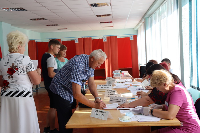 Октябрьский избирательный участок размещается в средней школе №1. К слову, за пять дней досрочного голосования здесь проголосовало 36,6% от всех избирателей, занесенных в списки. А всего голосовать на этом участке будет 946 человек.