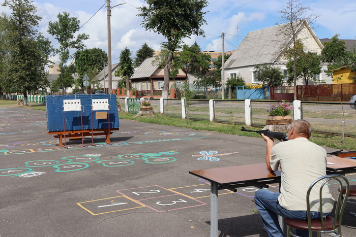 А вот на Молодежном участке № 5 можно проголосовав, даже искупаться. Участок размещается в Центре физкультурно-оздоровительной работы «Сатурн», где также открыт для посещения бассейн. И многие этим пользуются. Здесь же организована выездная торговля, культурная программа, можно поиграть в бильярд и многое другое. А вот на Красноармейском участке № 7 можно попробовать себя в меткости. Здесь развернул свою работу ТИР от Вилейского ДОСААФ. Кроме того, юные вилейчане тут могут сфотографироваться с большой ростовой куклой — спасателем.