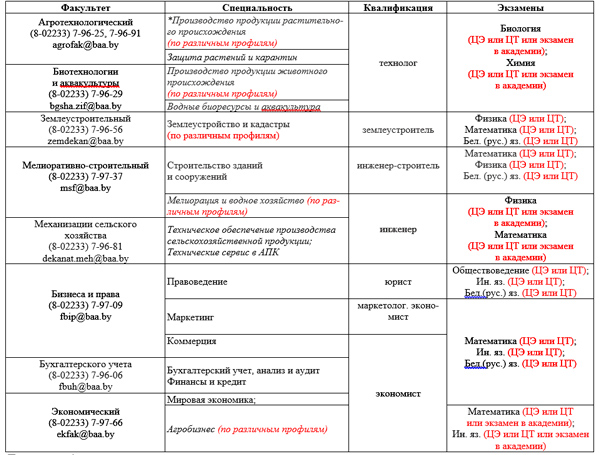 Особенности приема абитуриентов в УО «Белорусская государственная орденов Октябрьской революции и Трудового Красного Знамени сельскохозяйственная академия» в 2023 году