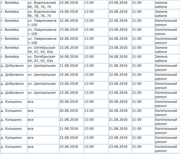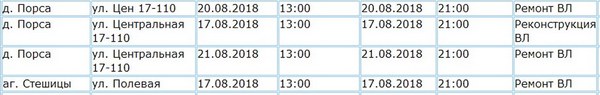 Так, в период с 17 по 24 августа электроэнергию будут отключать: