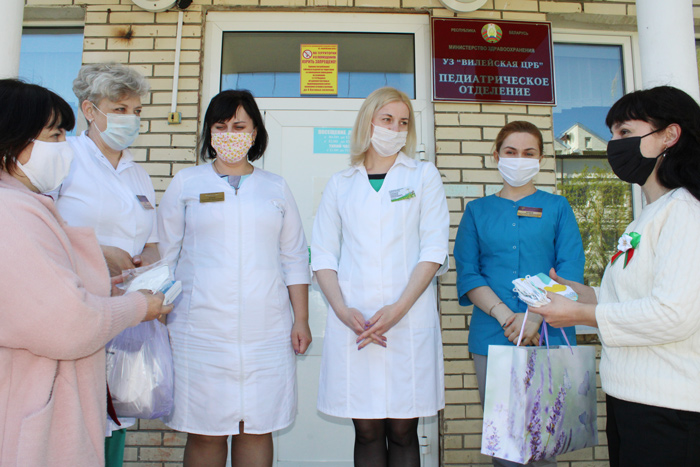 Работой остались довольны – все 100 масок, предназначенных для защиты органов дыхания, получились функциональными и красивыми. Их вместе с угольными респираторами и термометрами детскому отделению Вилейской ЦРБ передали педагоги накануне 9 мая. С коллективом отделения встретились на крыльце детской больницы, соблюдая респираторный этикет – нехитрое правило, соблюдая которое каждый может сделать свой вклад в предупреждение распространения вирусных инфекций и тем самым снизить нагрузку на медиков.