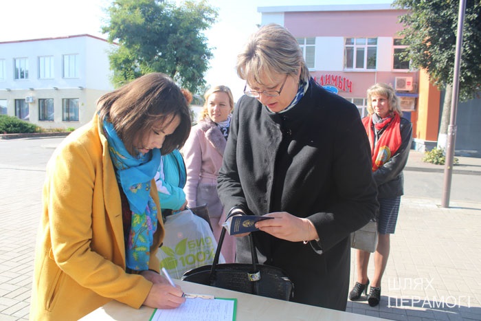 Пикет по сбору подписей в поддержку выдвижения в кандидаты в депутаты Палаты представителей Национального собрания Республики Беларусь седьмого созыва состоялся у Вилейского Дворца культуры 26 сентября.