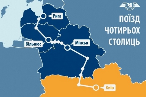 ПАО «Укрзализныця» по согласованию с железнодорожными администрациями Беларуси, Литвы и Латвии в рамках реализации пилотного проекта назначен поезд «ЧЕТЫРЕХ СТОЛИЦ» – № 31/32 Киев—Минск—Вильнюс—Рига, сообщает пресс-служба БЖД.