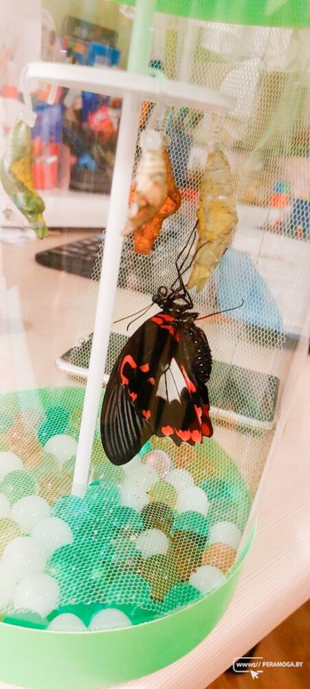 – Несколько дней назад друзья решили удивить нас необычным подарком – вручили четырех куколок тропических бабочек и бабочкарий – специальный прозрачный тубус, в котором в домашних условиях можно самостоятельно вырастить бабочек, – рассказывает Ольга. – Такому подарку очень удивились и с нетерпением ждали, когда произойдет их перевоплощение, к тому же мы не знали какими они будут по размеру и расцветке. Друзья сказали, что это будет сюрпризом.